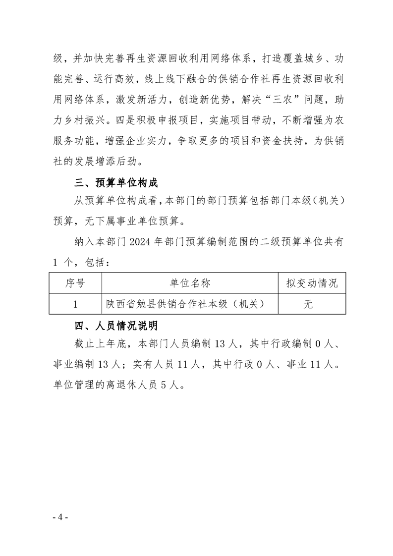 勉县供销合作社2024年部门预算公开说明