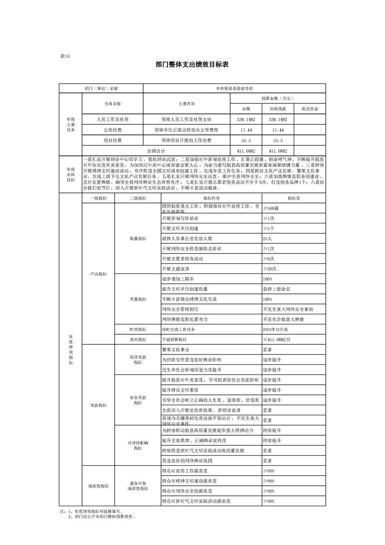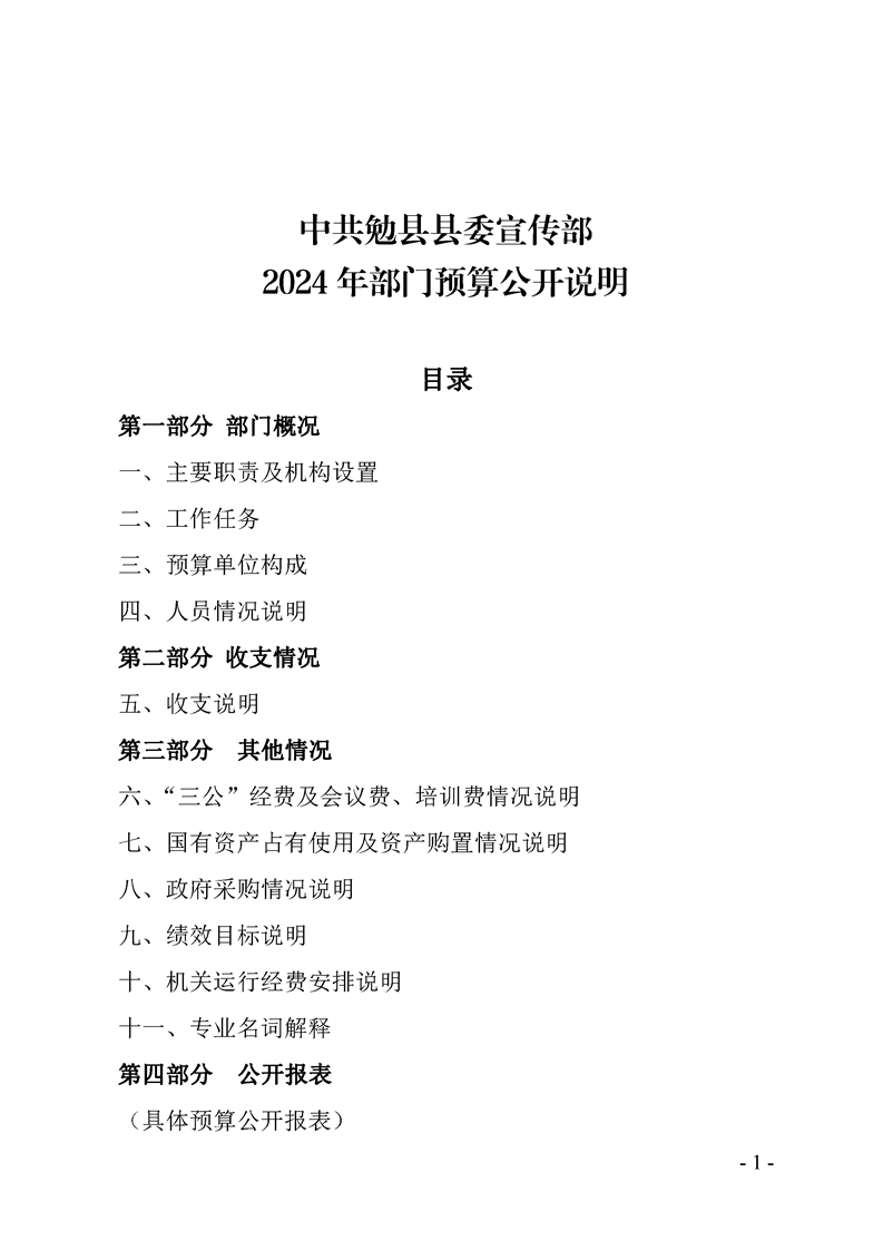 中共勉县县委宣传部2024年部门预算公开说明