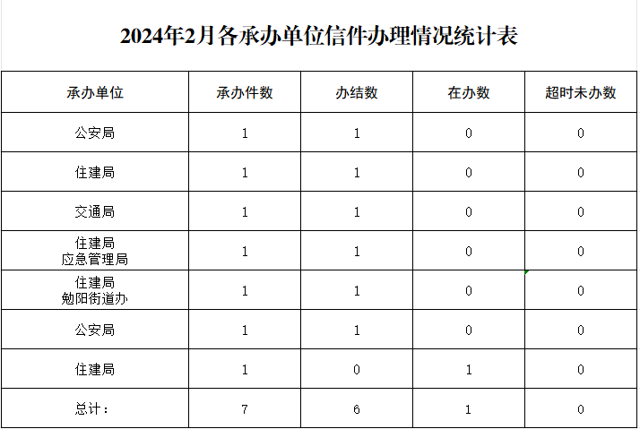 2024年2月各承办单位信件办理情况统计表