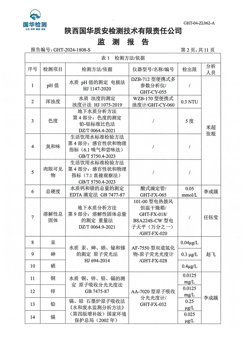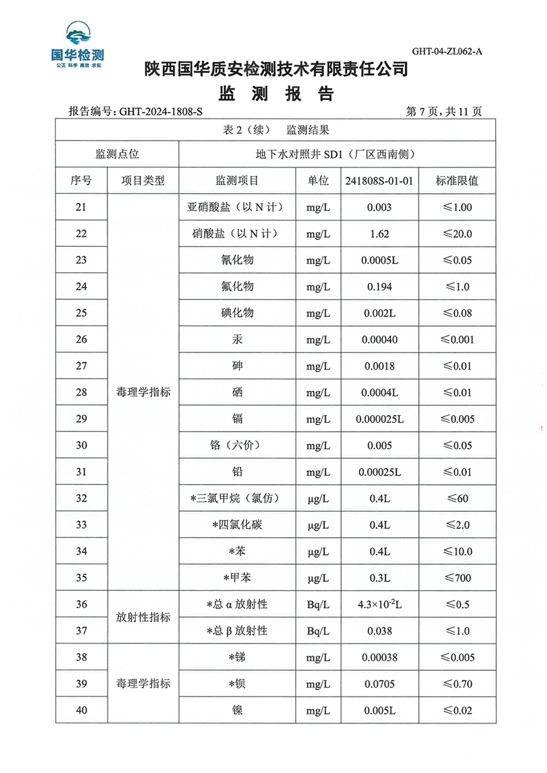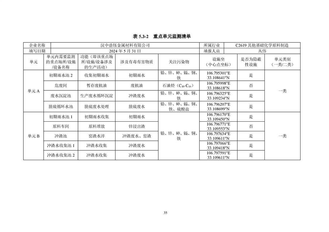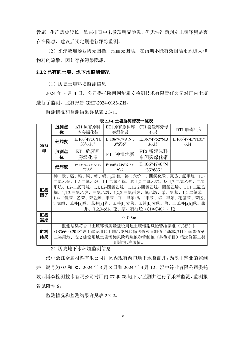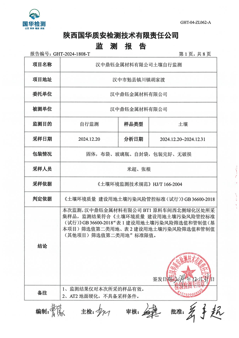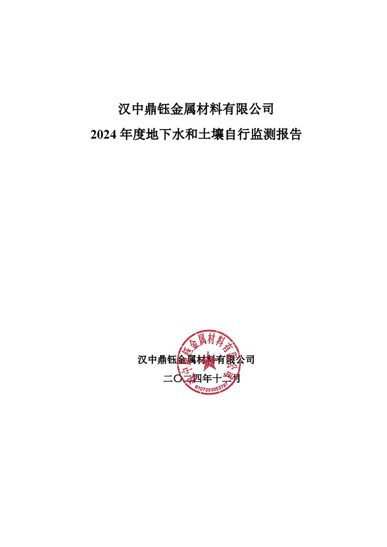 汉中鼎钰金属材料有限公司2024年度地下水和土壤自行监测报告