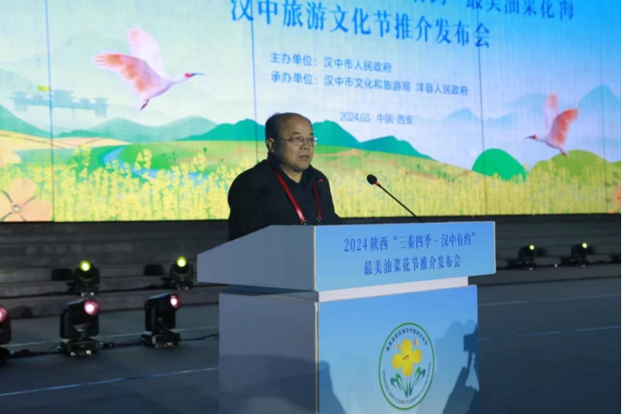 3月2日,2024陕西“三秦四季·汉中有约”最美油菜花海汉中旅游文化节推介发布会在西安大唐不夜城举行。