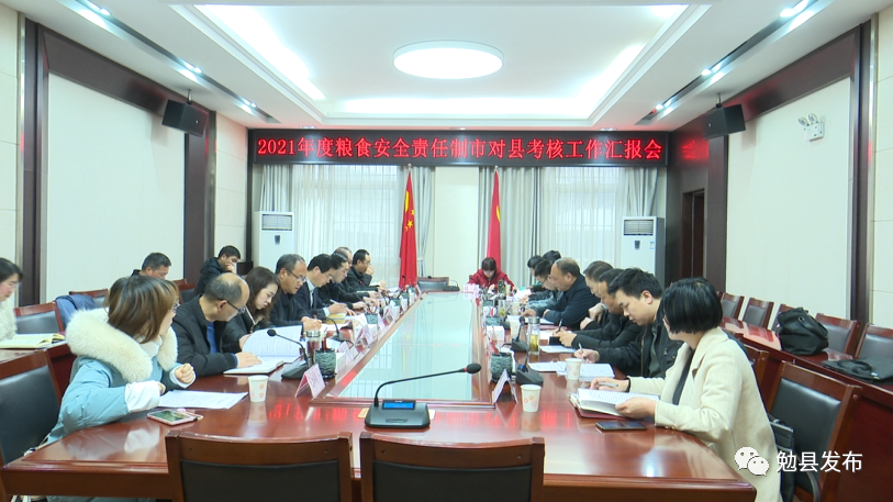 在随后召开的勉县2021年度粮食安全责任制市对县区实地考核工作汇报会上,景裕辉汇报了我县2021年度粮食安全责任制落实情况和2020年度考核通报问题整改情况,并对勉县下一阶段粮食安全责任制工作作表态发言。