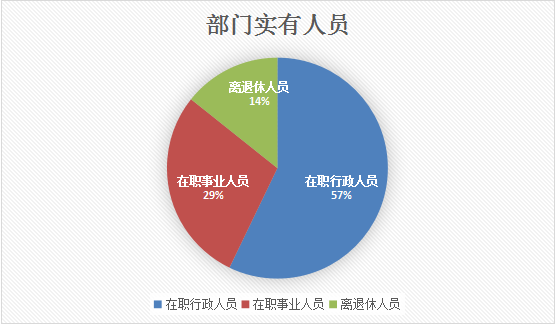 截止2017年底,本部门人员编制16人,其中行政编制16人、事业编制7人;实有人员24人,其中行政16人、事业8人。单位管理的离退休人员4人。