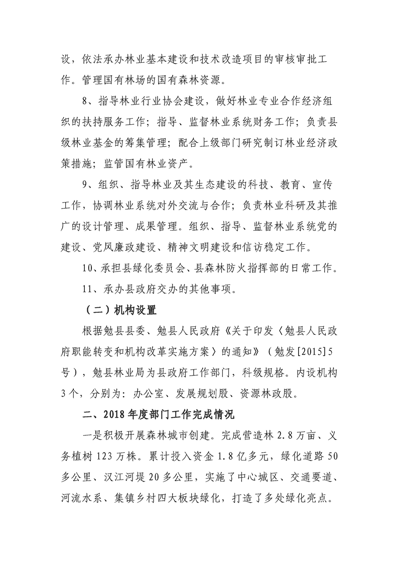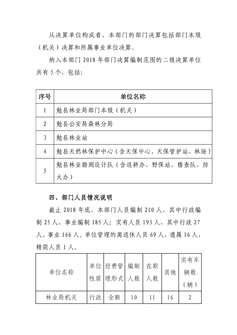 勉县林业局2018年部门决算说明