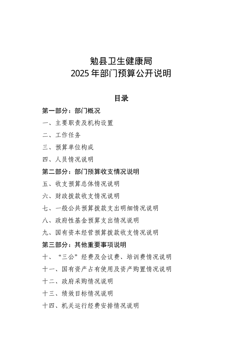勉县卫生健康局2025年部门预算公开说明