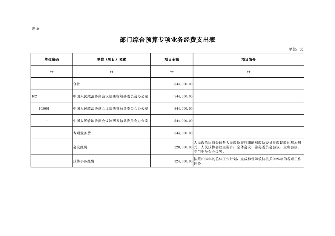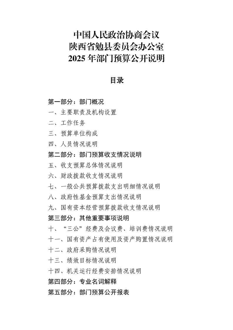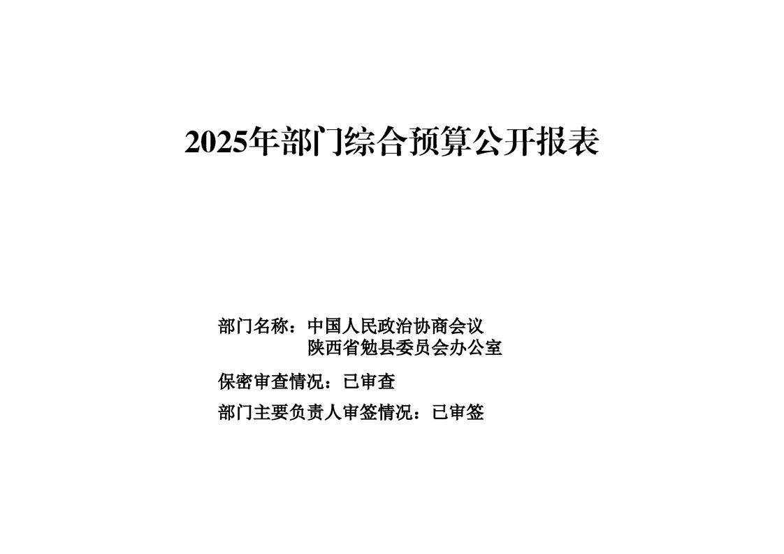 中国人民政治协商会议陕西省勉县委员会办公室2025年部门预算公开说明