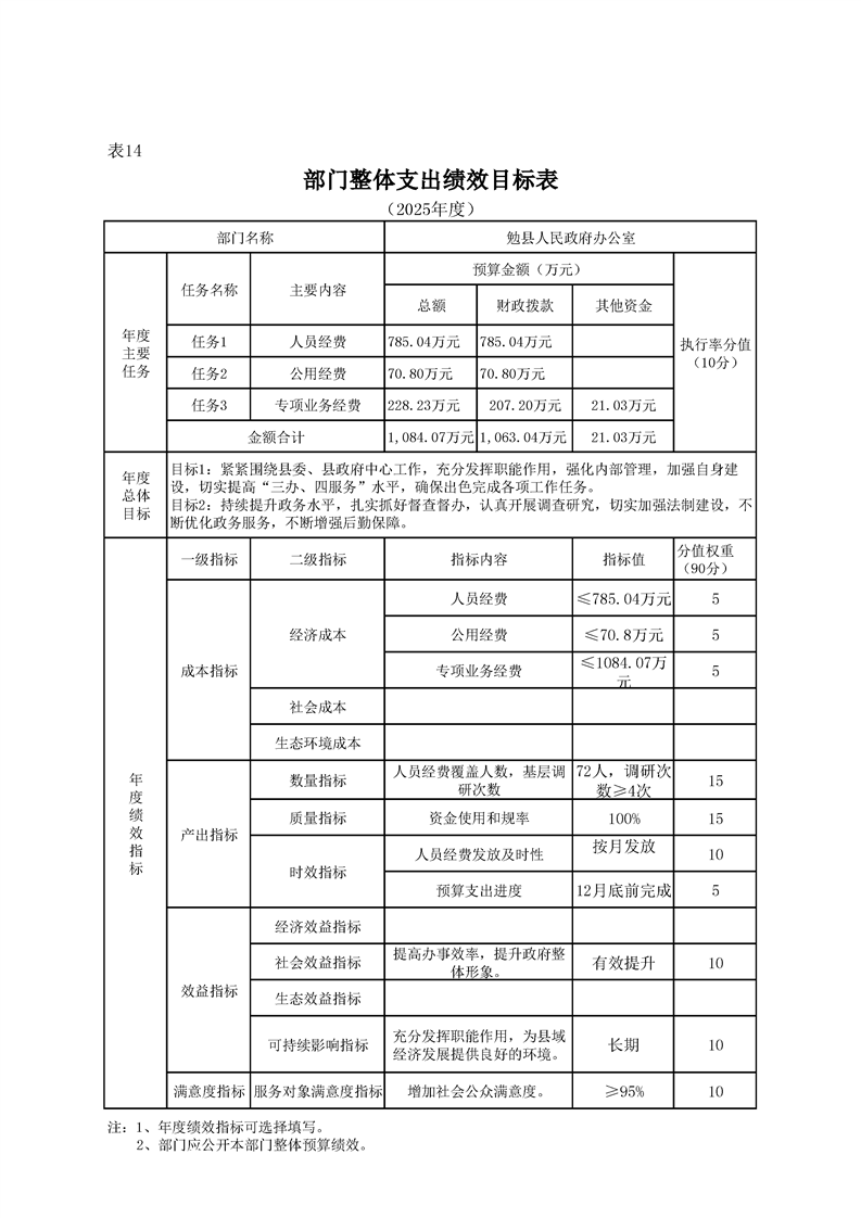 勉县人民政府办公室2025年部门预算公开说明