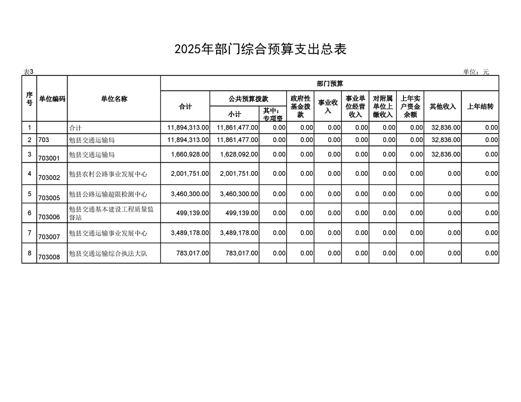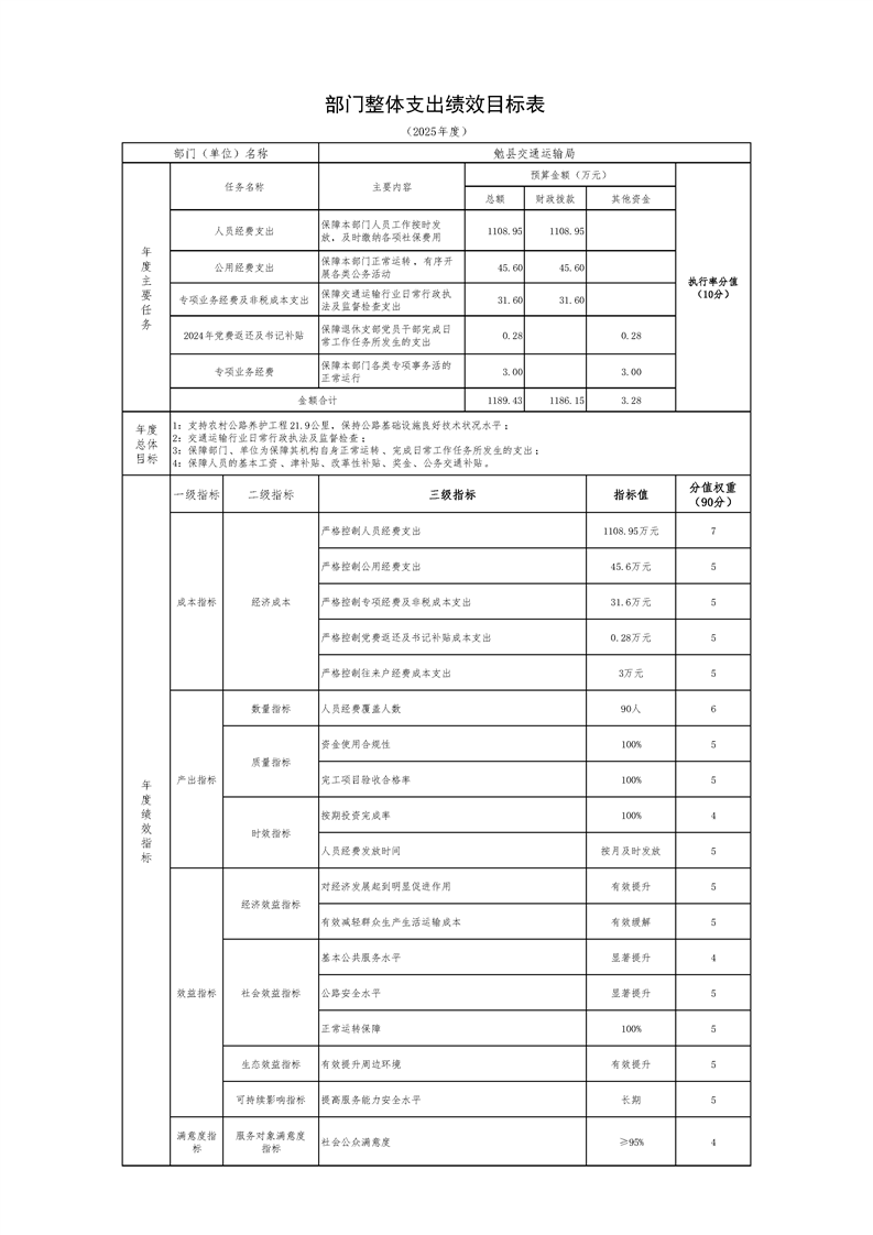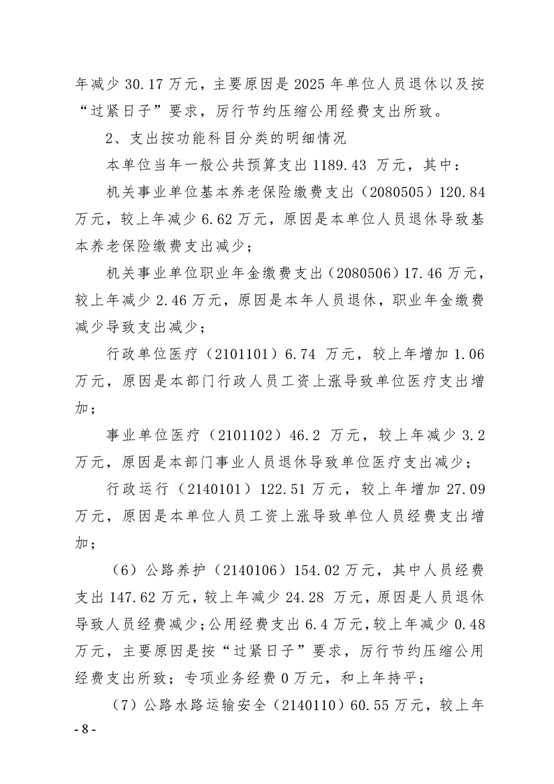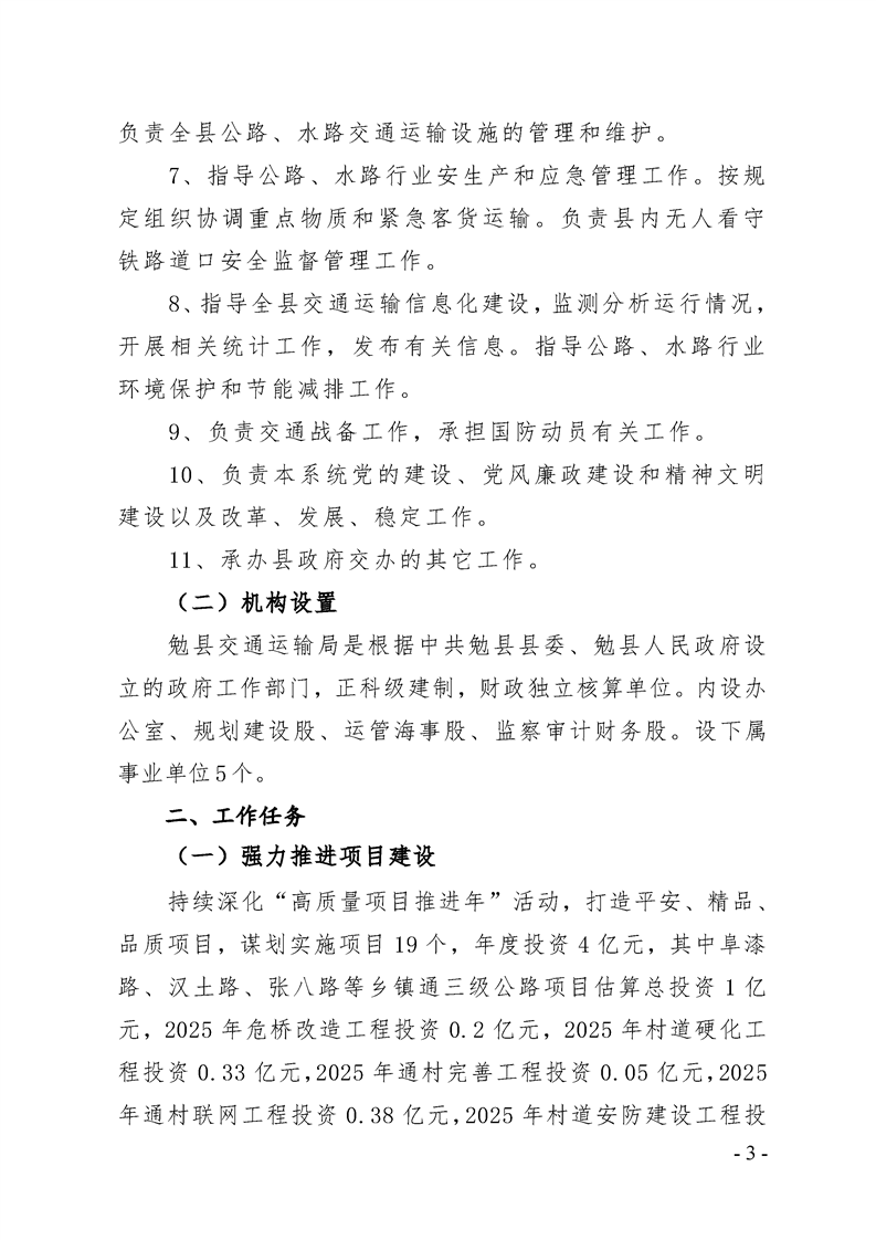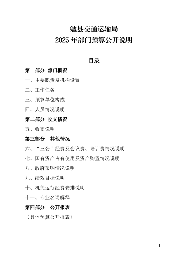 勉县交通运输局2025年部门预算公开说明