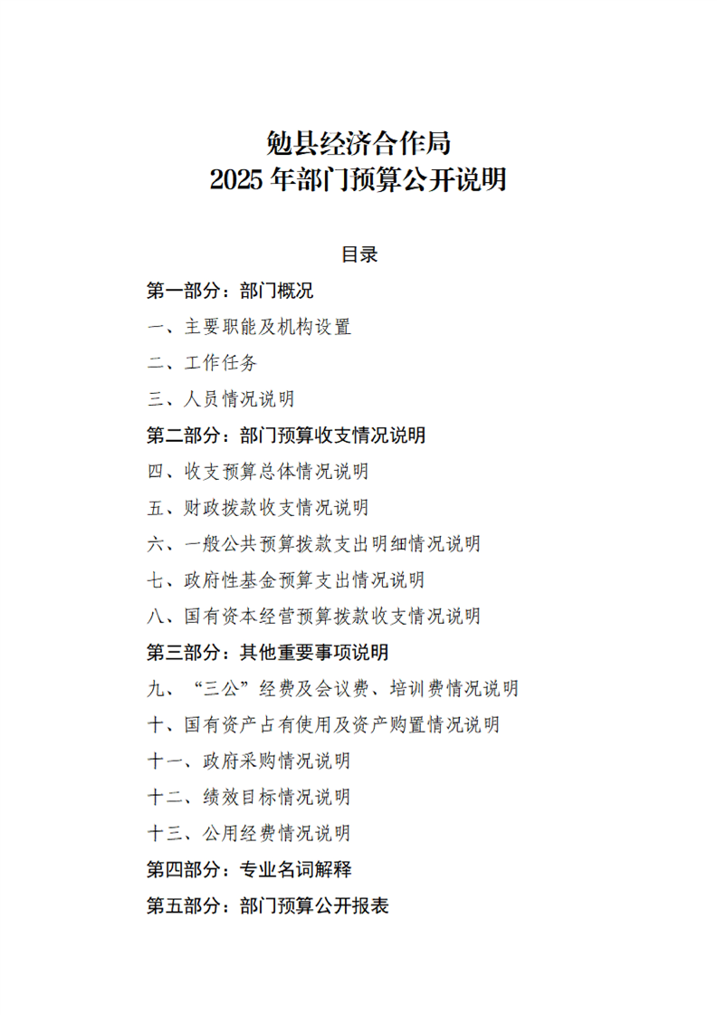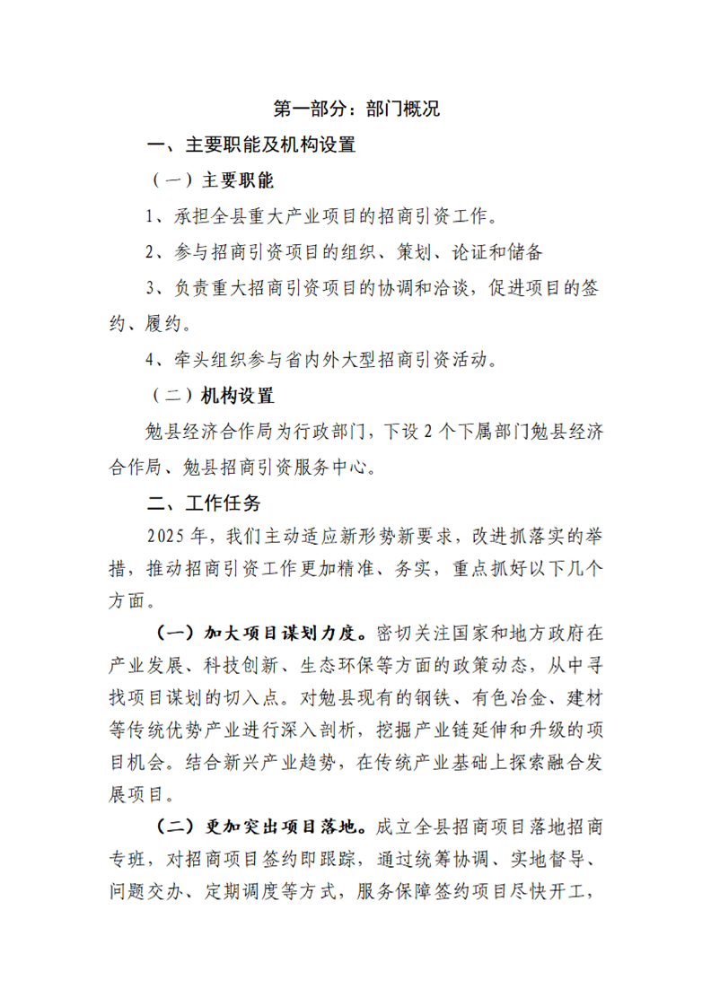 勉县经济合作局2025年部门预算公开说明