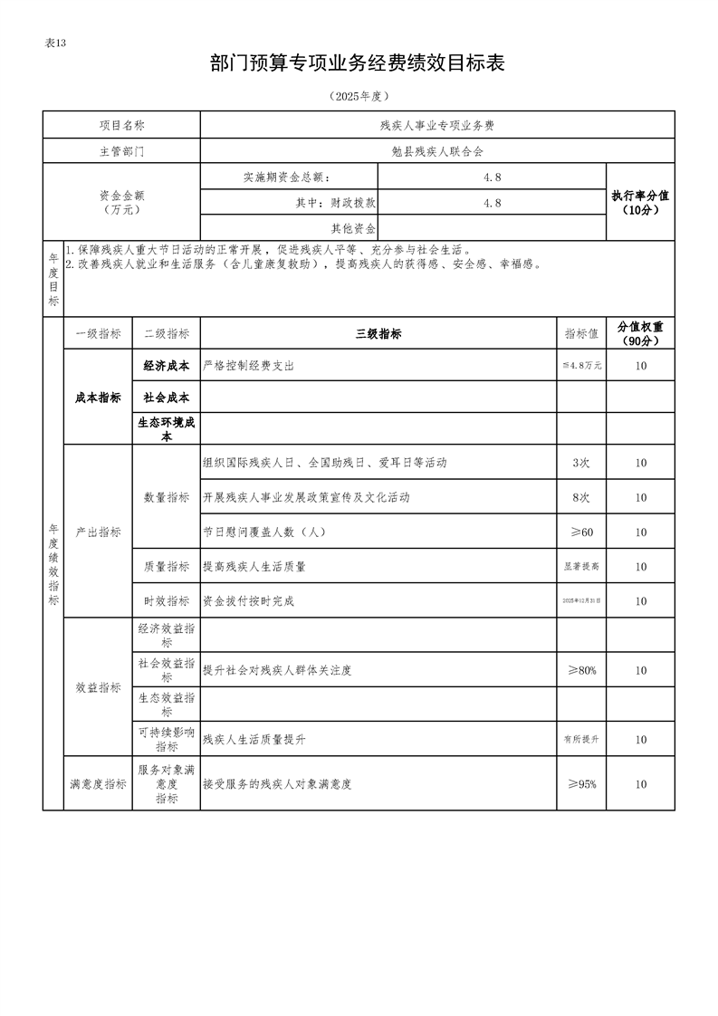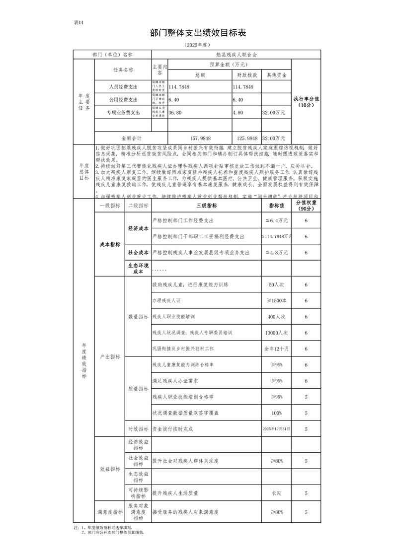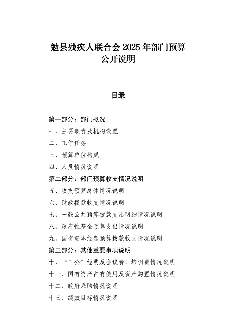 勉县残疾人联合会2025年部门预算公开说明