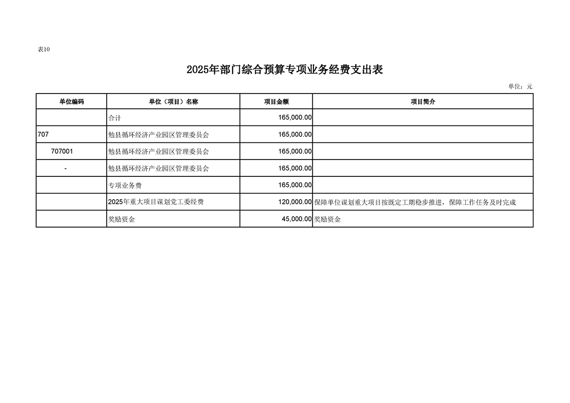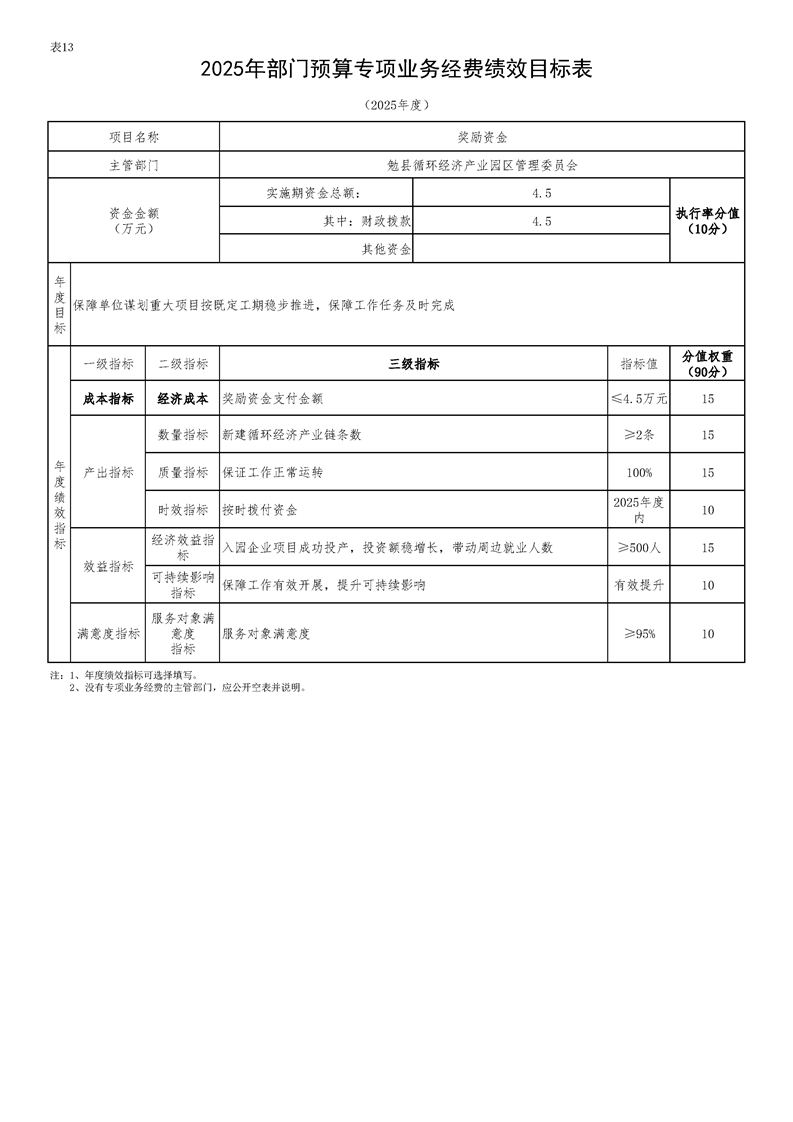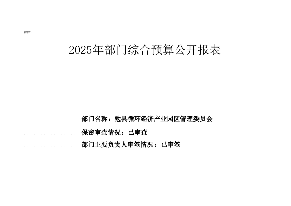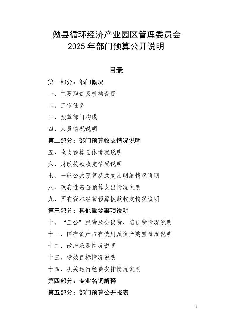 勉县循环经济产业园区管理委员会2025年部门预算公开说明