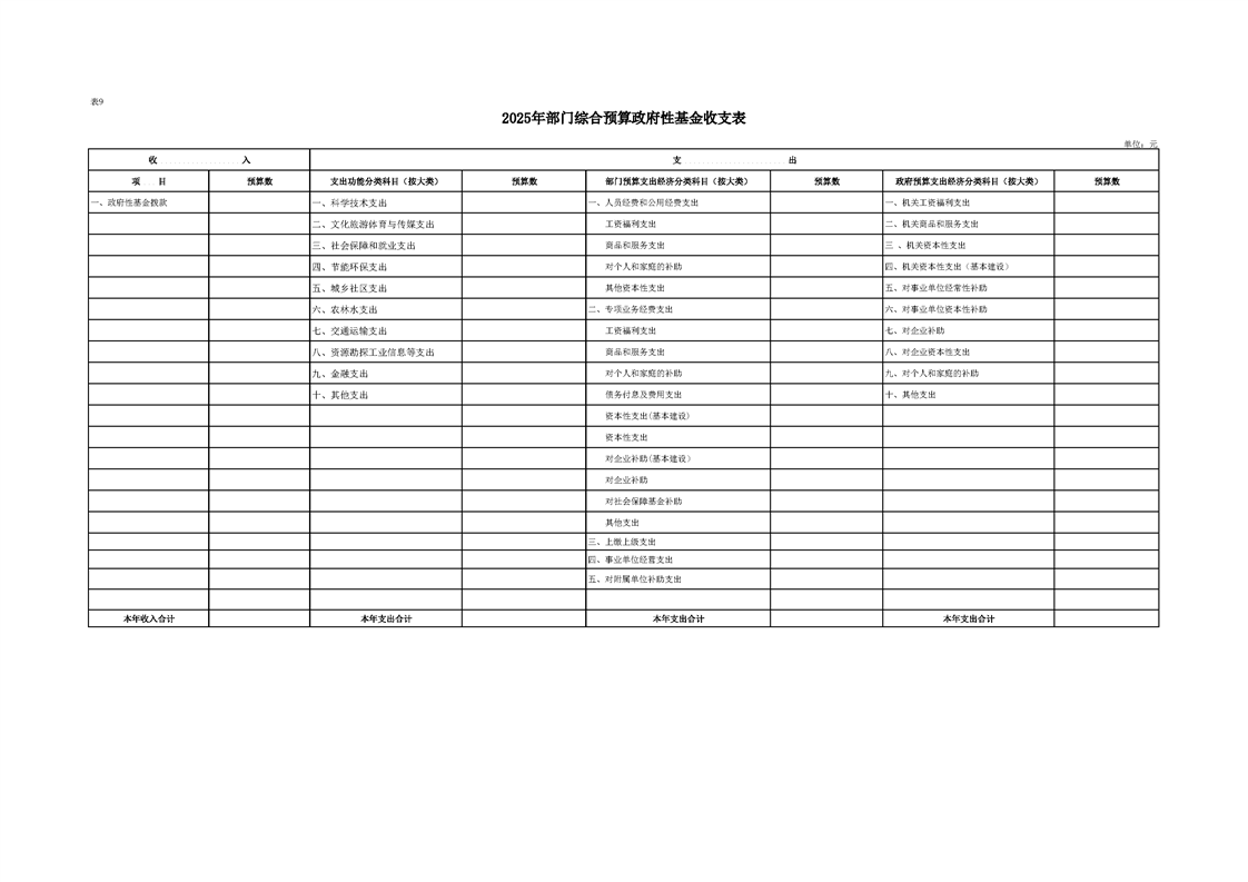 2025年县级部门预算公开目录