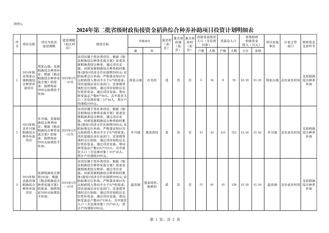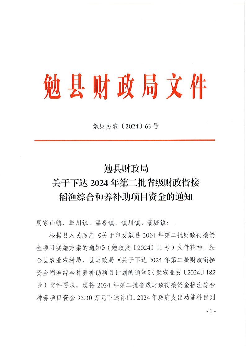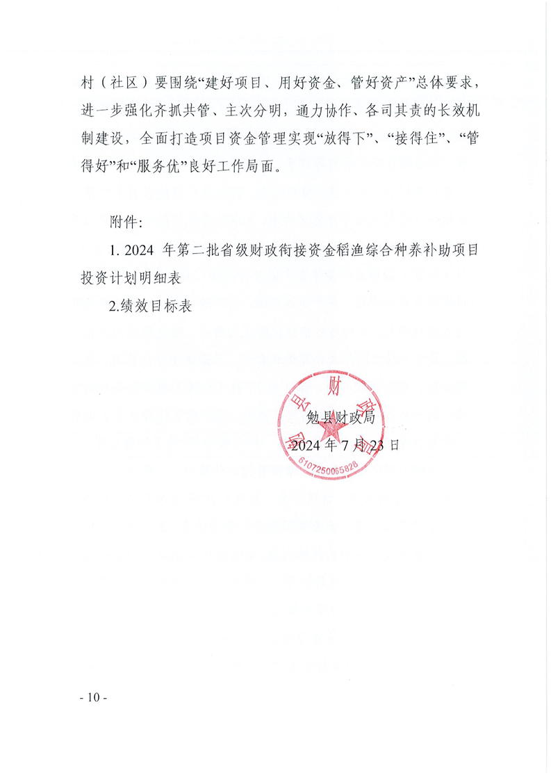 关于下达2024年第二批省级财政衔接稻渔综合种养补助项目资金的通知