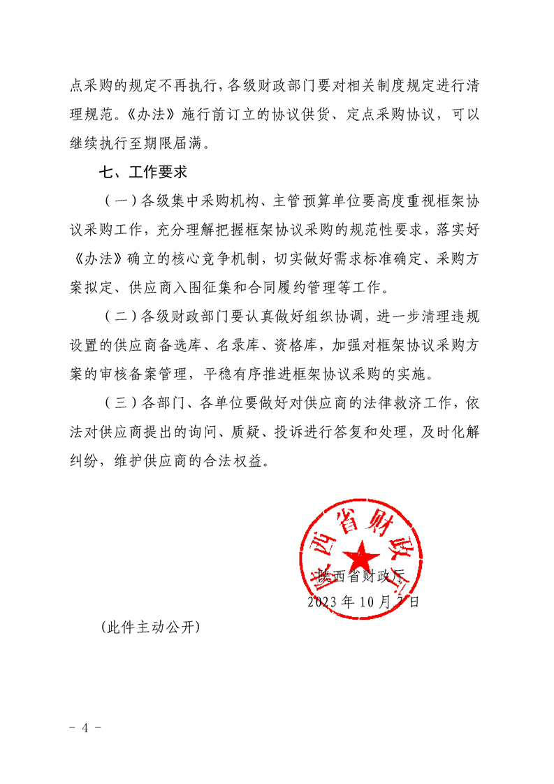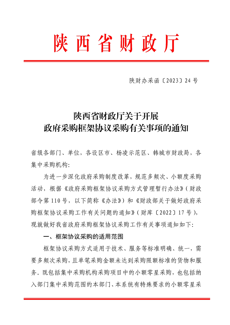 陕财办采函【2023】24号陕西省财政厅关于开展政府采购框架协议采购有关事项的通知