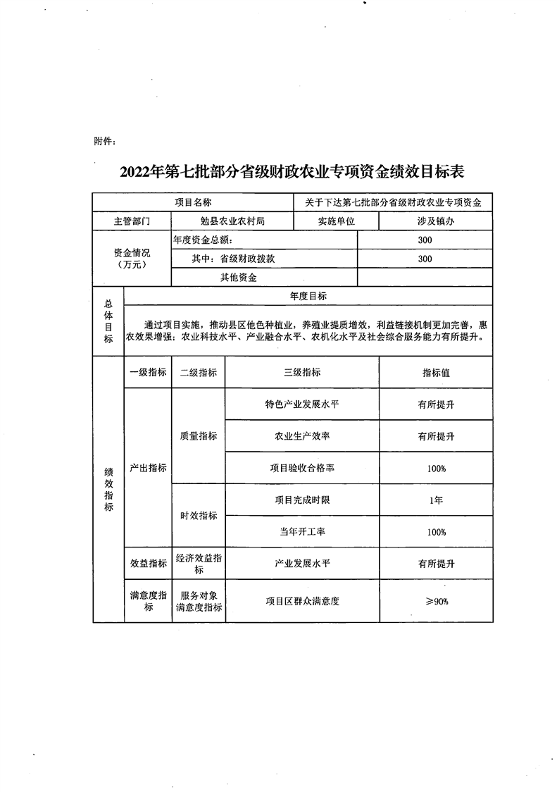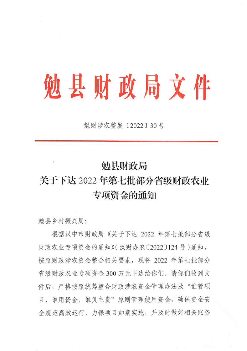 勉财涉农整发【2022】30号 关于下达2022年第七批部分省级财政农业专项资金的通知(县级文件)