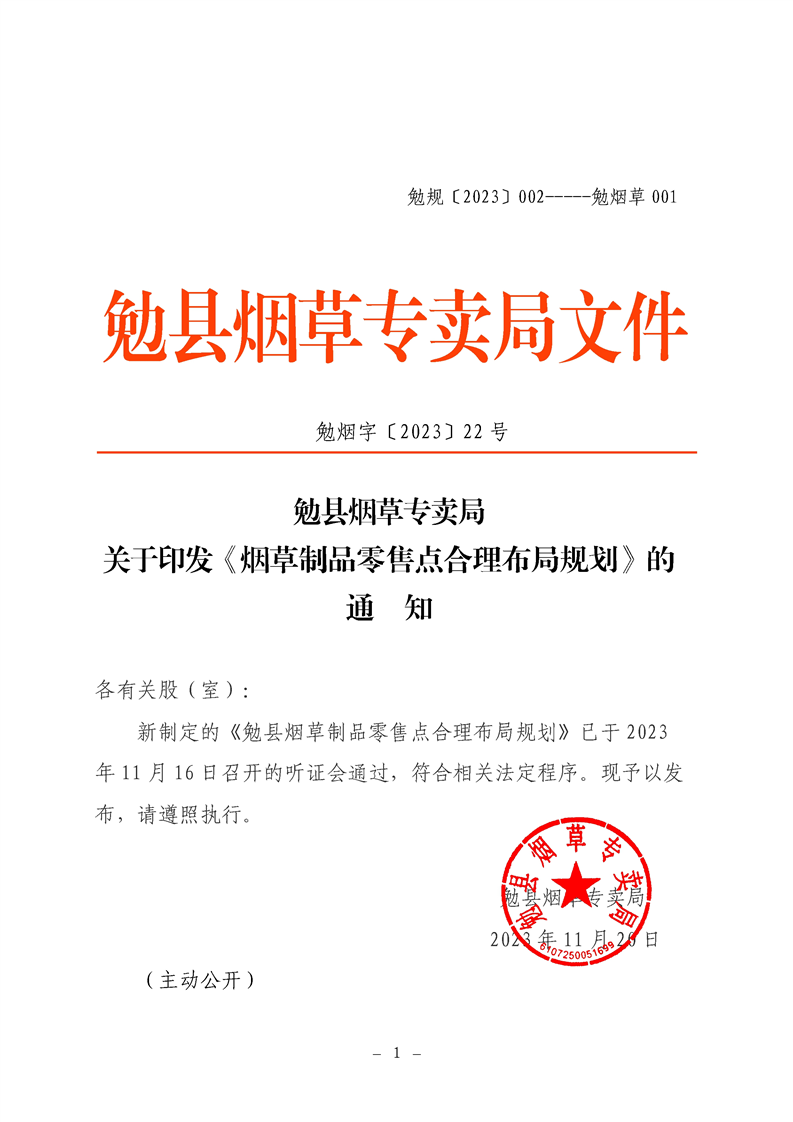 【有效】勉县烟草专卖局关于印发《烟草制品零售点合理布局规划》的通知