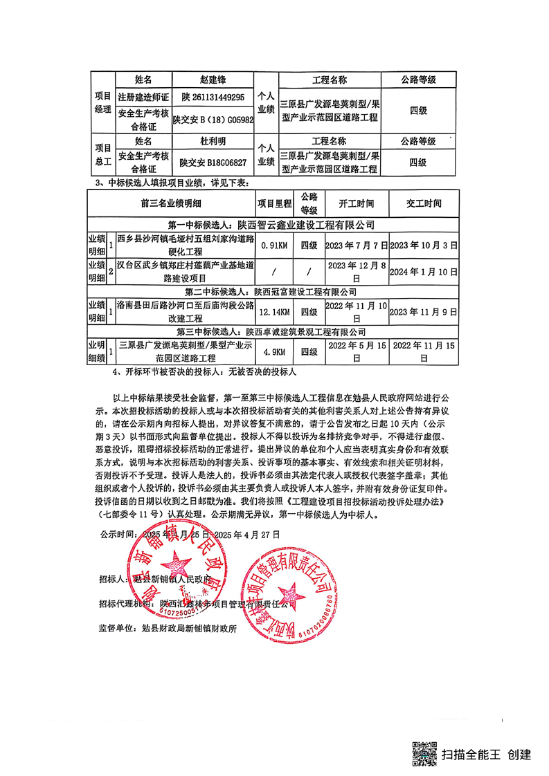 2025年新铺镇菜坝沟村十组中药材产业路项目施工招标评标结果公示