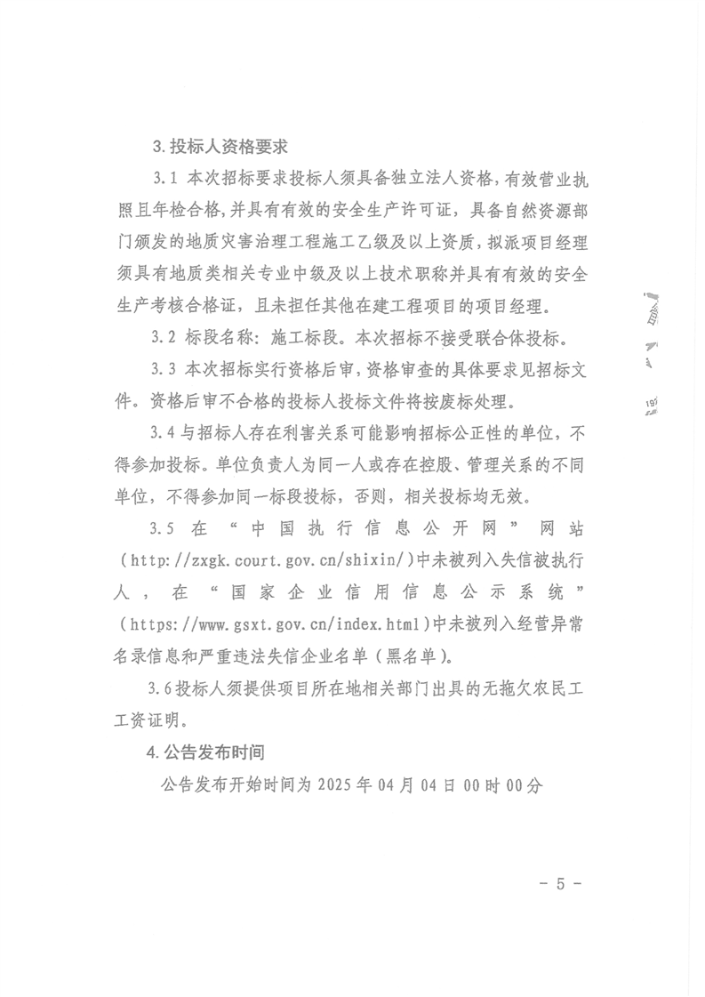 勉县茶店镇鹰咀石崩塌治理工程招标公告