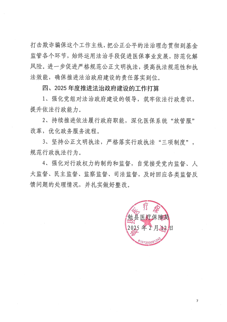 医保局关于2024年法治政府建设年度工作报告