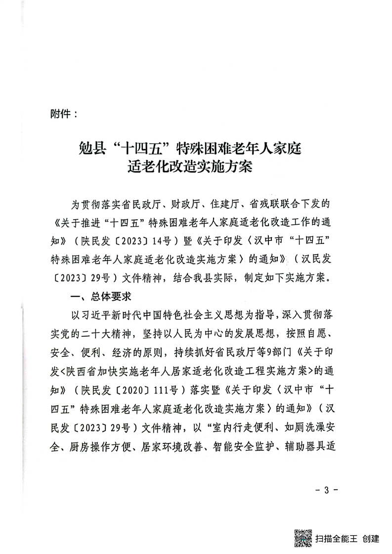 关于印发《勉县“十四五”特殊困难老年人家庭适老化改造实施方案》的通知