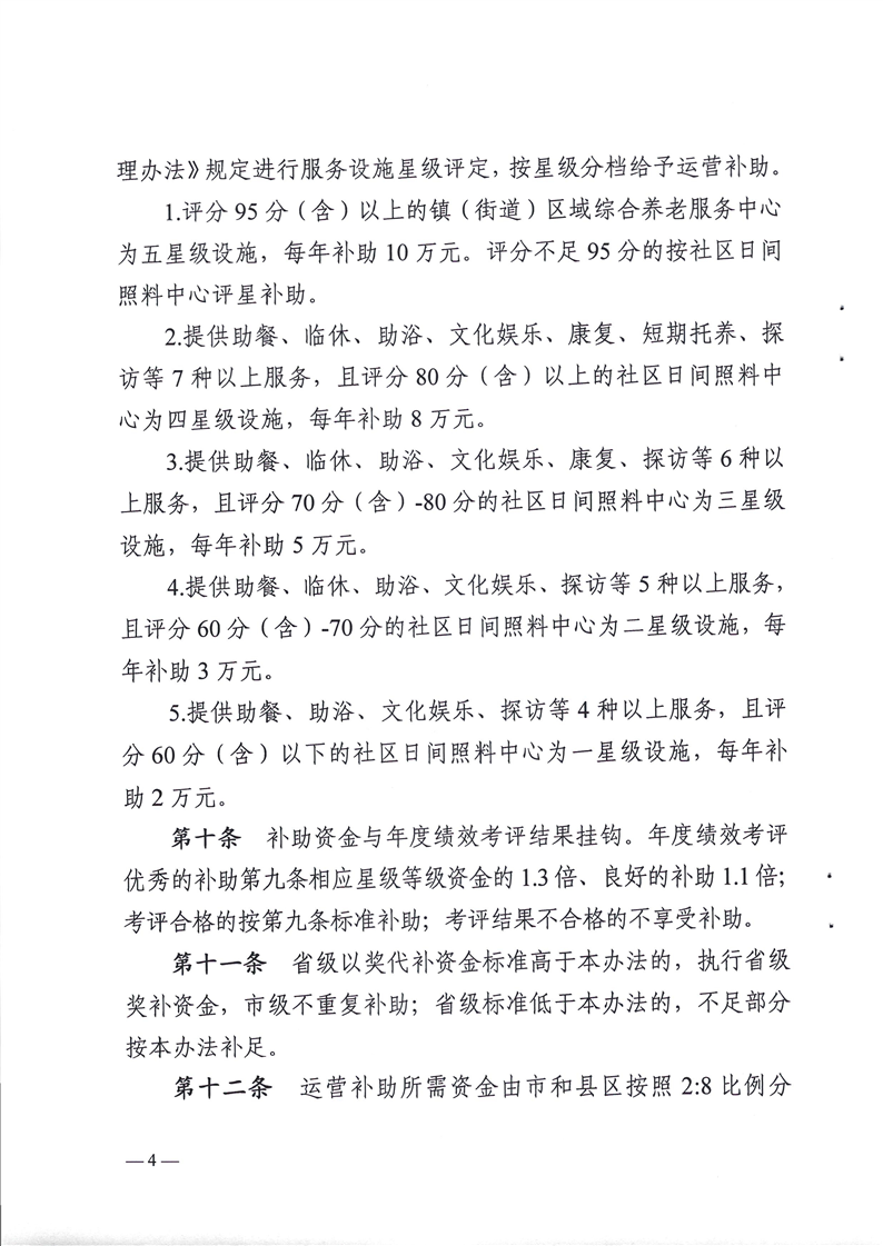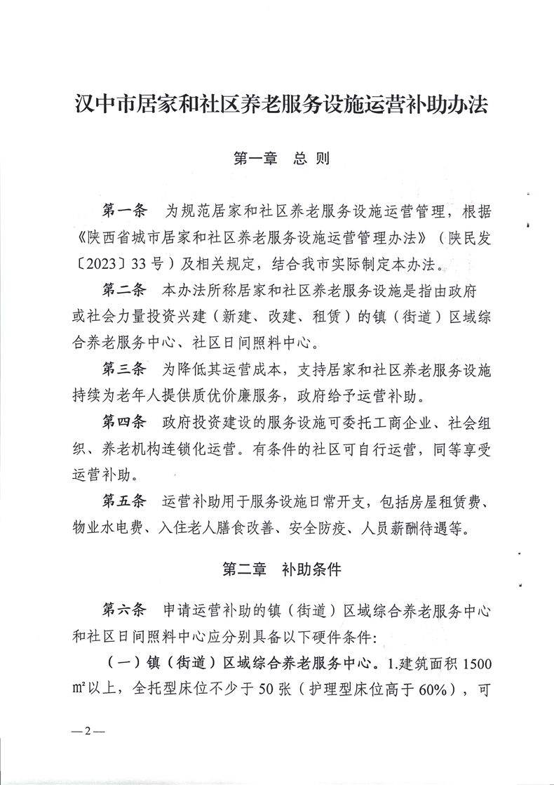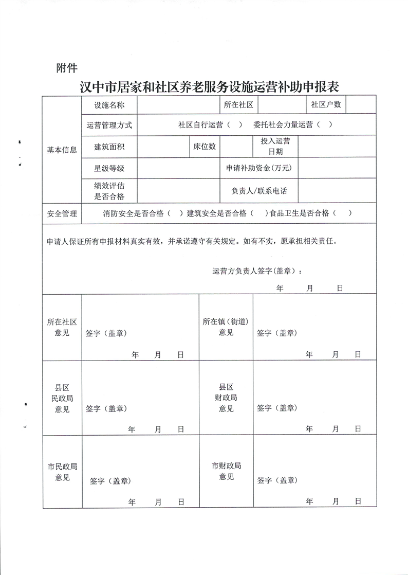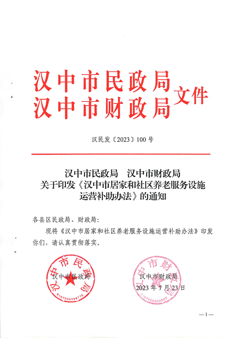 汉中市民政局 汉中市财政局关于印发《汉中市居家和社区养老服务设施运营补助办法》的通知