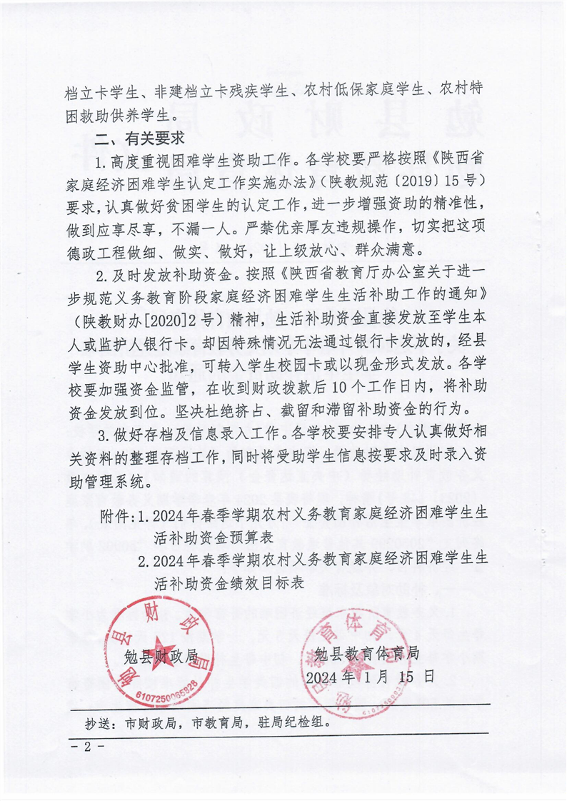关于下达2024年春季学期义务教育家庭经济困难学生生活补助资金的通知