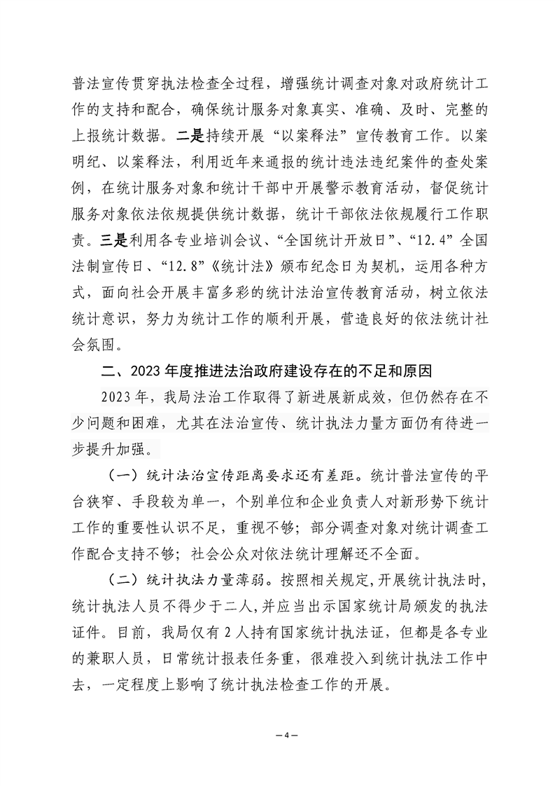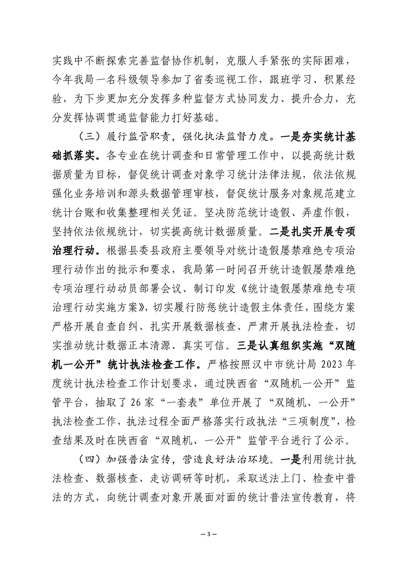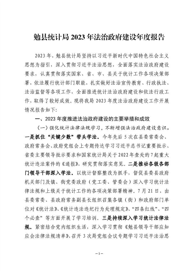 勉县统计局2023年法治政府建设年度报告