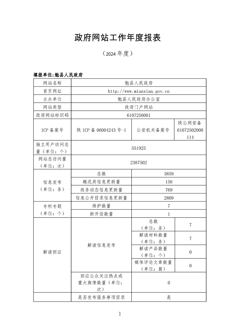 勉县人民政府网站工作年度报表(2024年度)