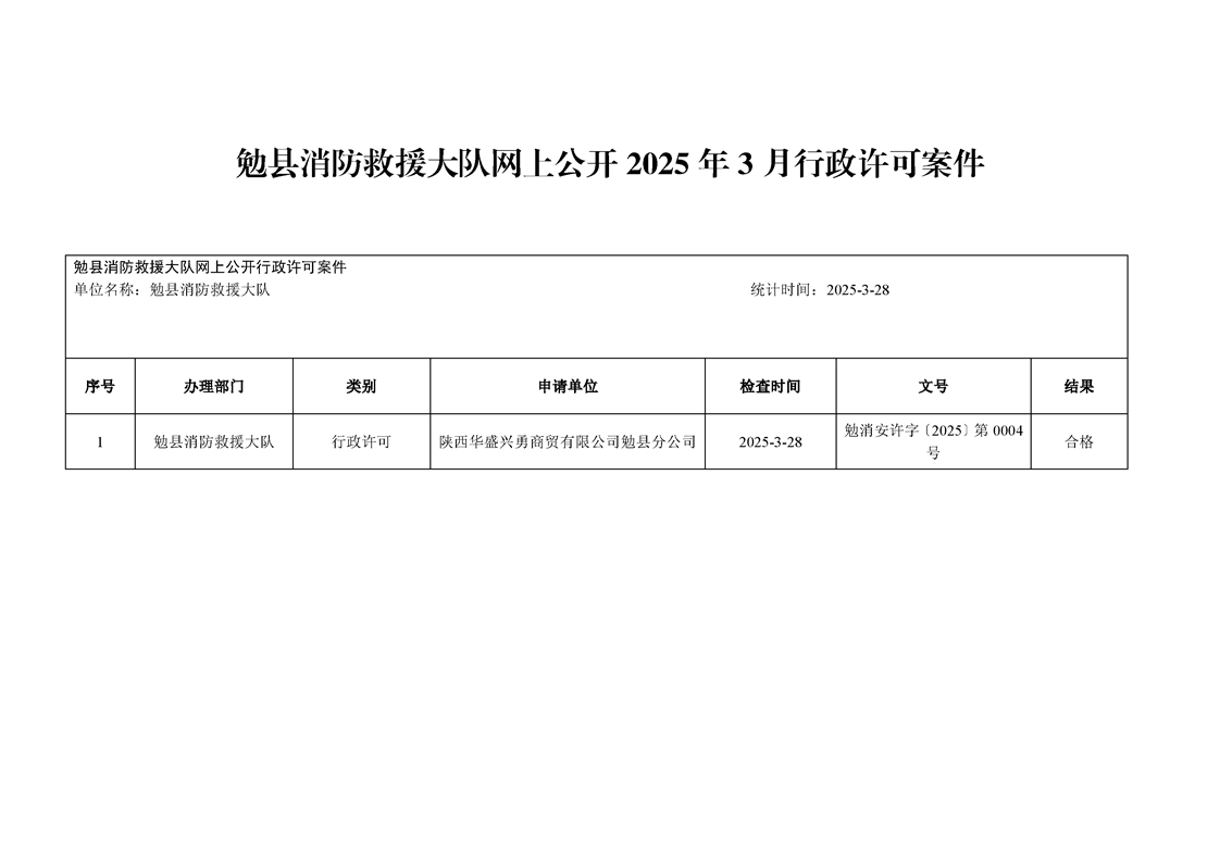 勉县消防救援大队网上公开2025年3月行政许可案件