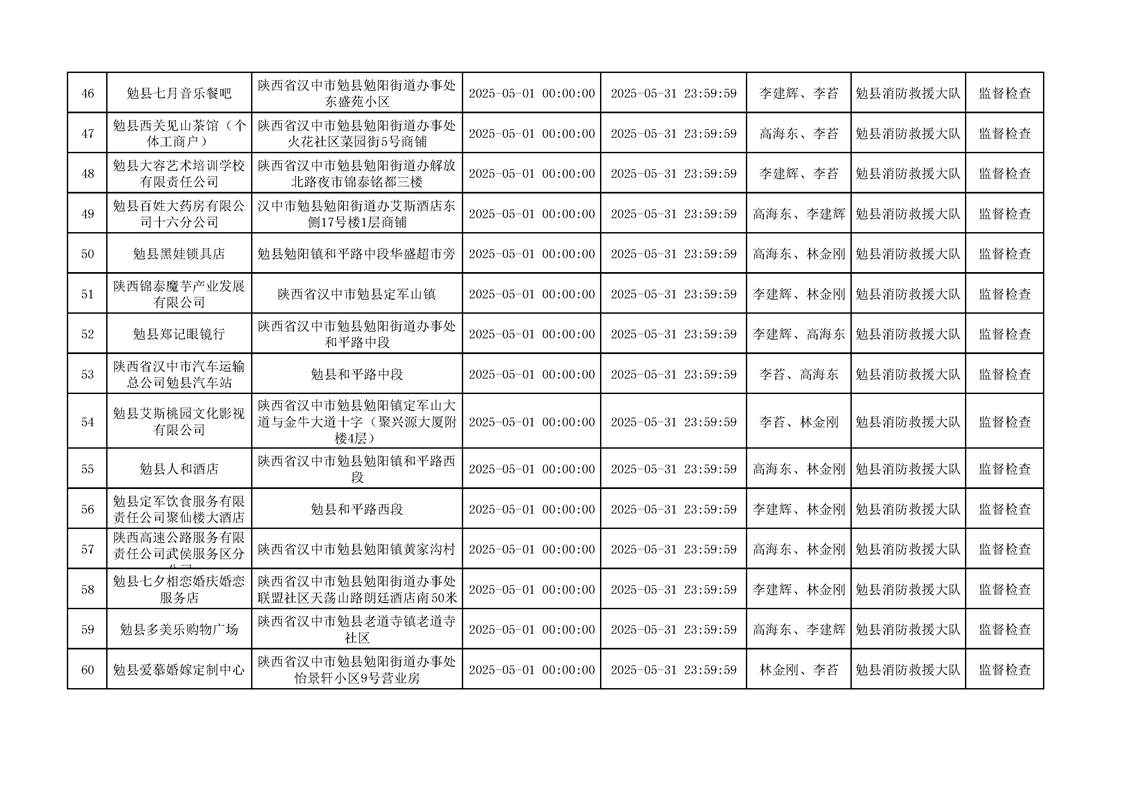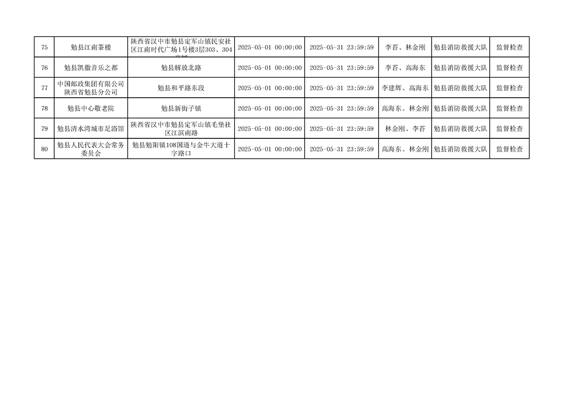 勉县消防救援大队网上公开2025年5月监督检查任务