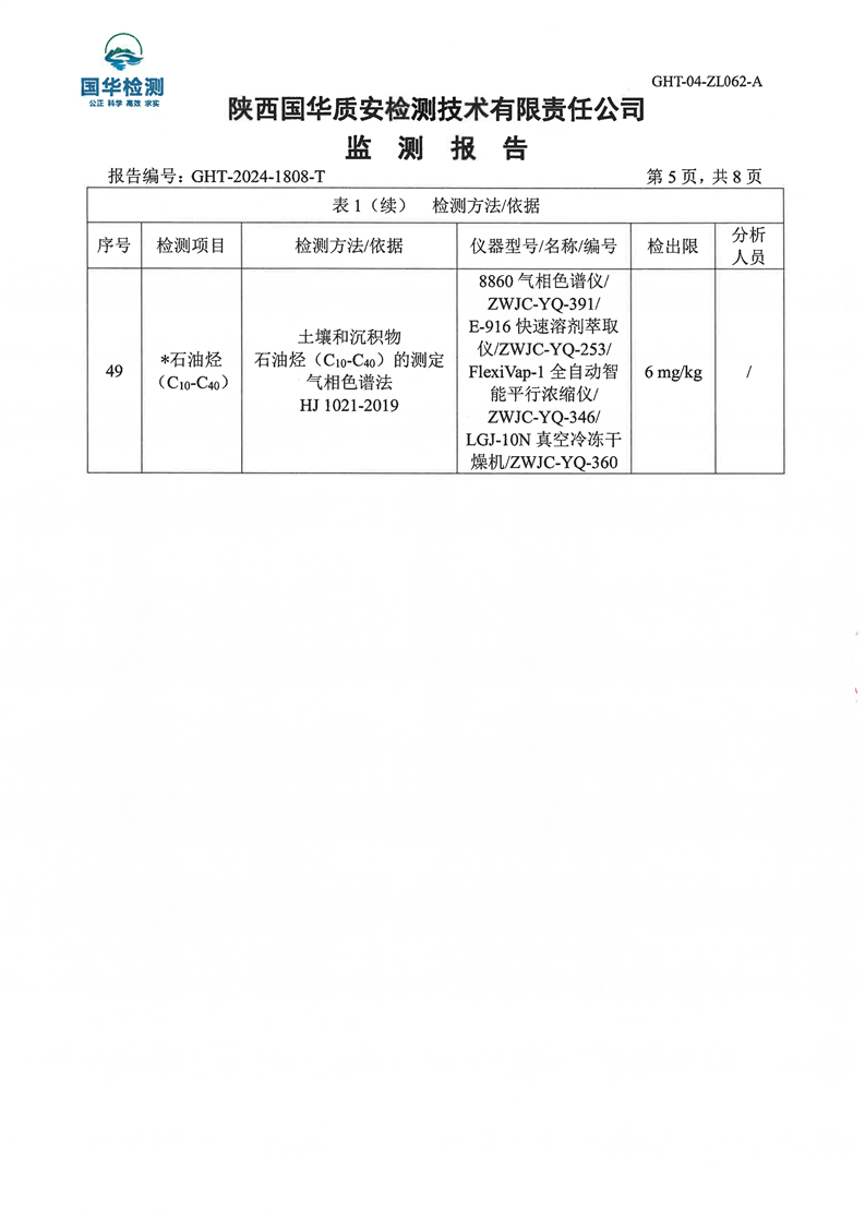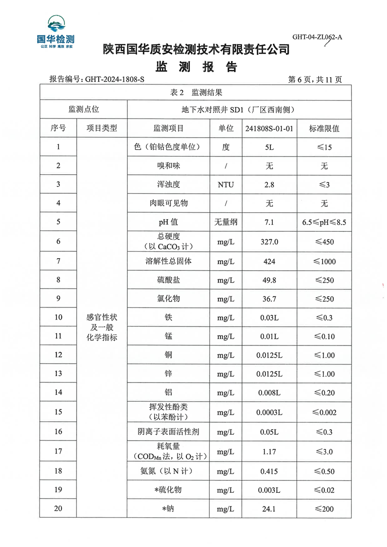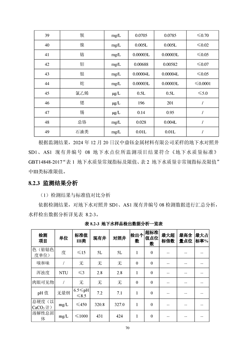 汉中鼎钰金属材料有限公司2024年度地下水和土壤自行监测报告