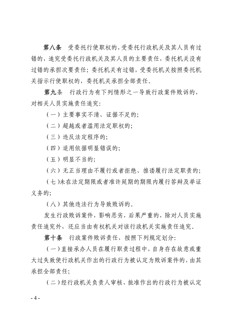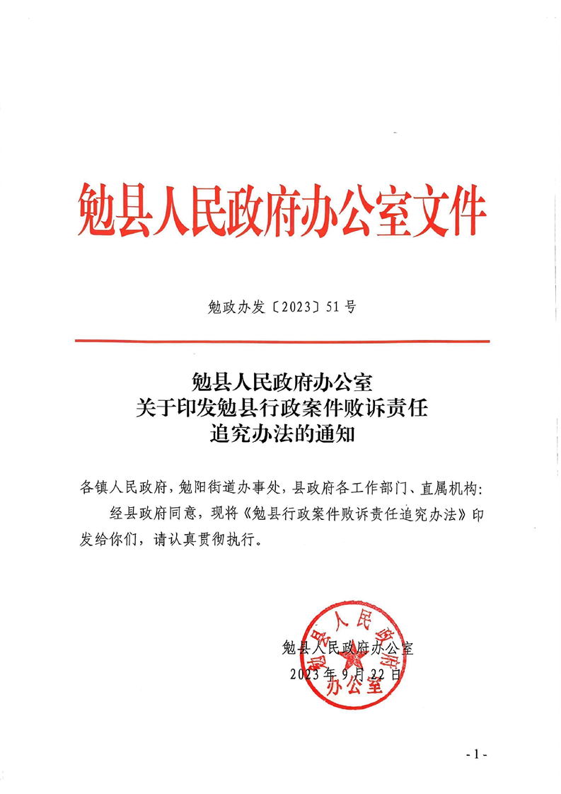 关于印发勉县行政案件败诉责任追究办法的通知